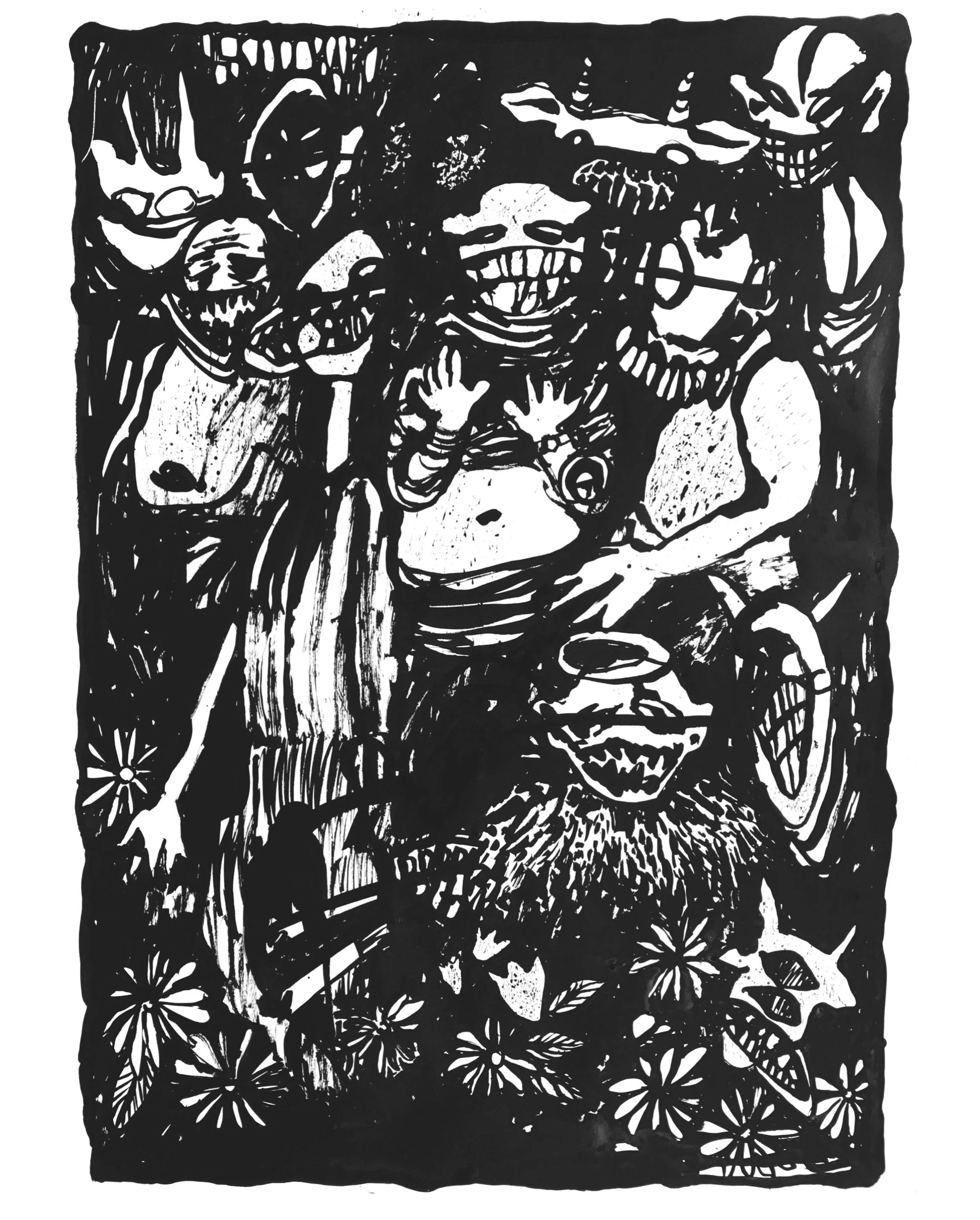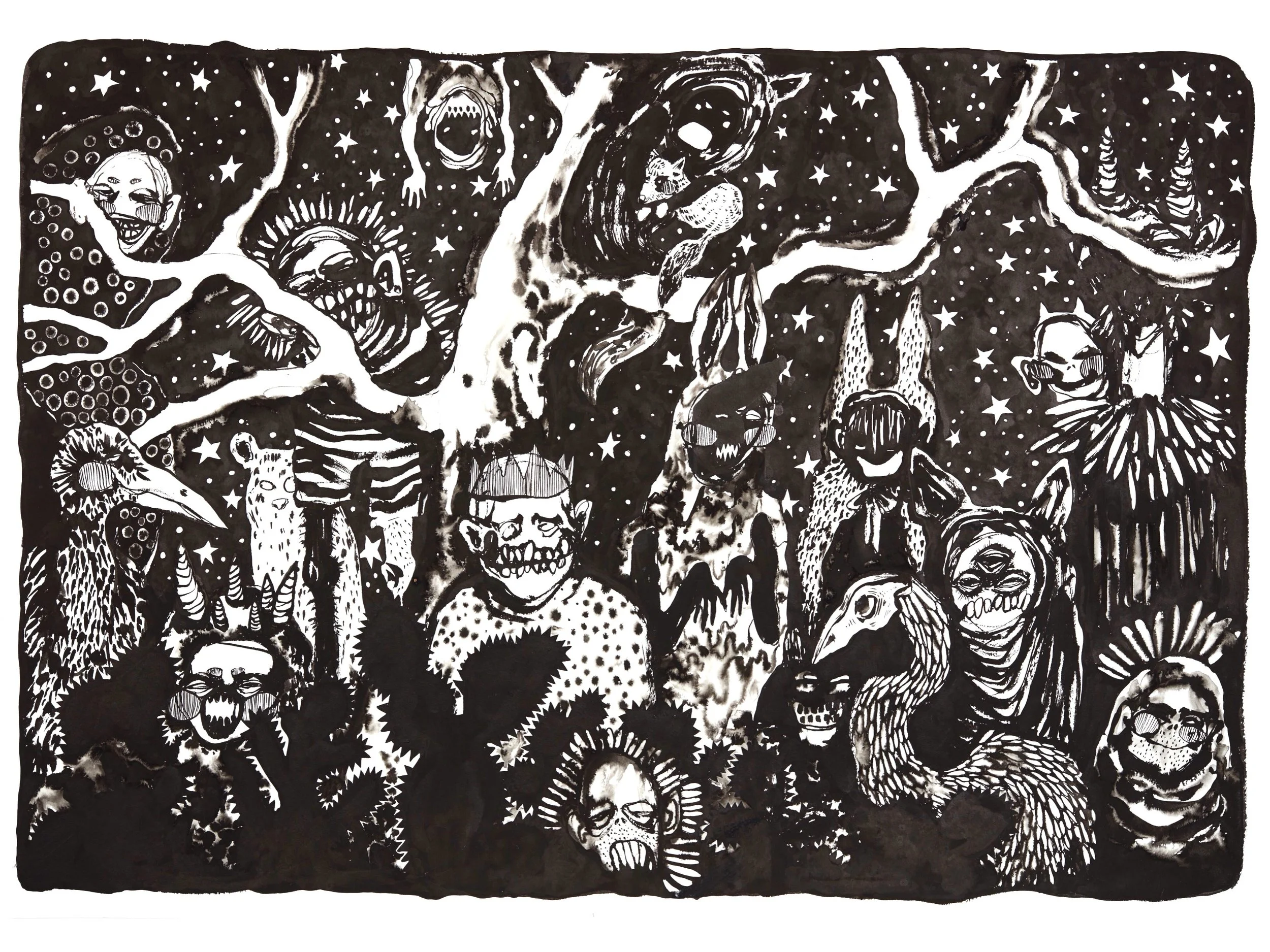 Gathering, 2017, Ink on paper 70 x 100 cm