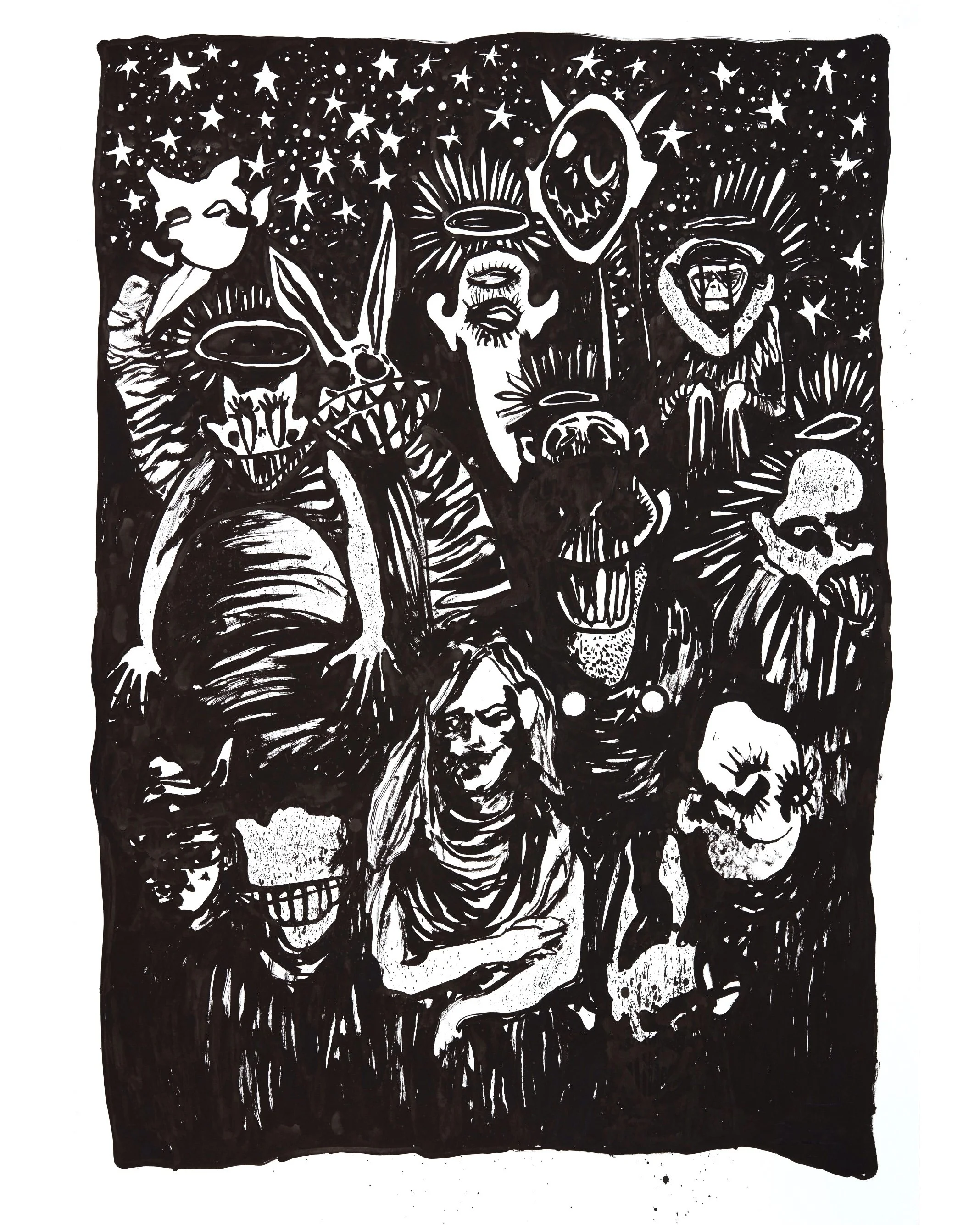 Friends of mine, 2017, Ink on paper 100 x 70 cm