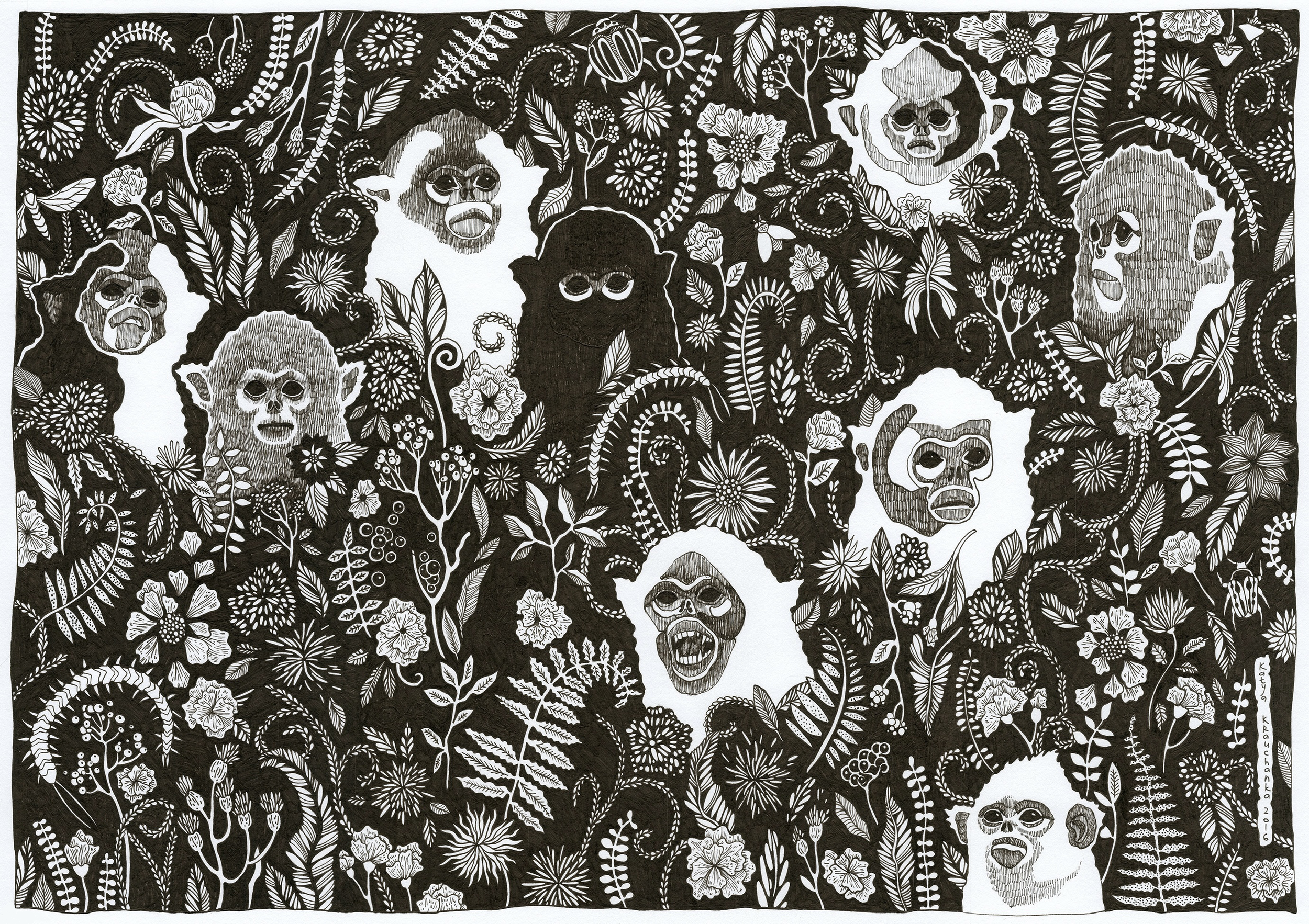 Monkeys, 2016, Pen on paper 30 x 40 cm